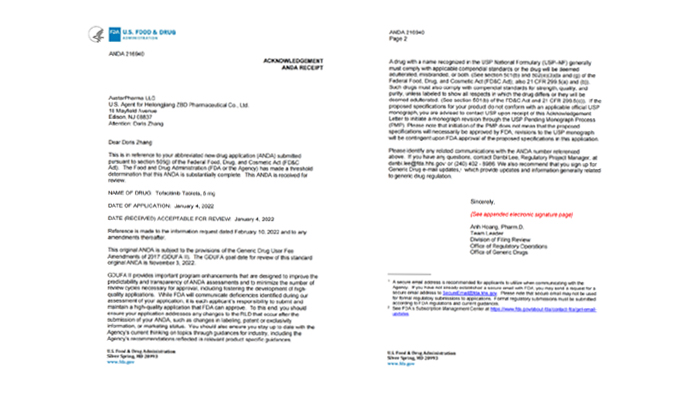 珍寶島化藥仿制藥布局再進(jìn),枸櫞酸托法替布片獲美國(guó)FDA注冊(cè)上市許可受理