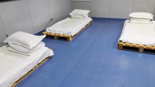 由于新冠病毒傳染性強(qiáng)、潛伏期長等特性,配送人員多次往返醫(yī)院等高危場所,接觸人員復(fù)雜,極易暴露,為節(jié)約時(shí)間,同時(shí)消除疫情擴(kuò)散的潛在隱患,值班人員把公司培訓(xùn)室改成臨時(shí)臥室,兩張木質(zhì)托盤一拼就成了他們的床,當(dāng)我們還沉睡在被窩里時(shí),他們已經(jīng)在送貨的路上。
