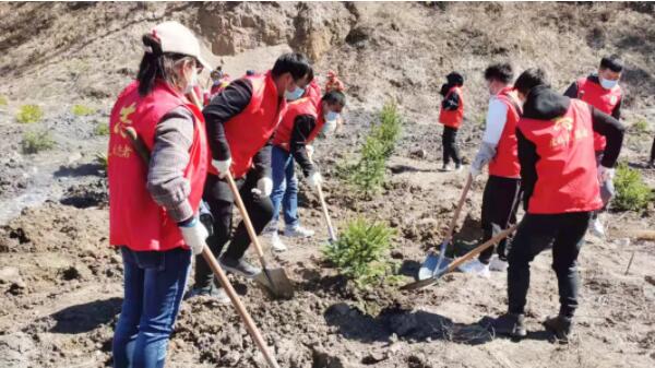 志愿者們參觀了“保護生態(tài)環(huán)境主題展板”,沿著晨光路進行“健康徒步”,最后來到虎林水庫山上開始綠化植樹。大家有的拿樹苗,有的挖坑,有的培土,忙碌的場面,熱火朝天。一個個鮮紅的身影,一顆顆翠綠的樹苗,一面面飄揚的旗幟,在這片空曠的土地上編織出一幅美麗的畫卷。